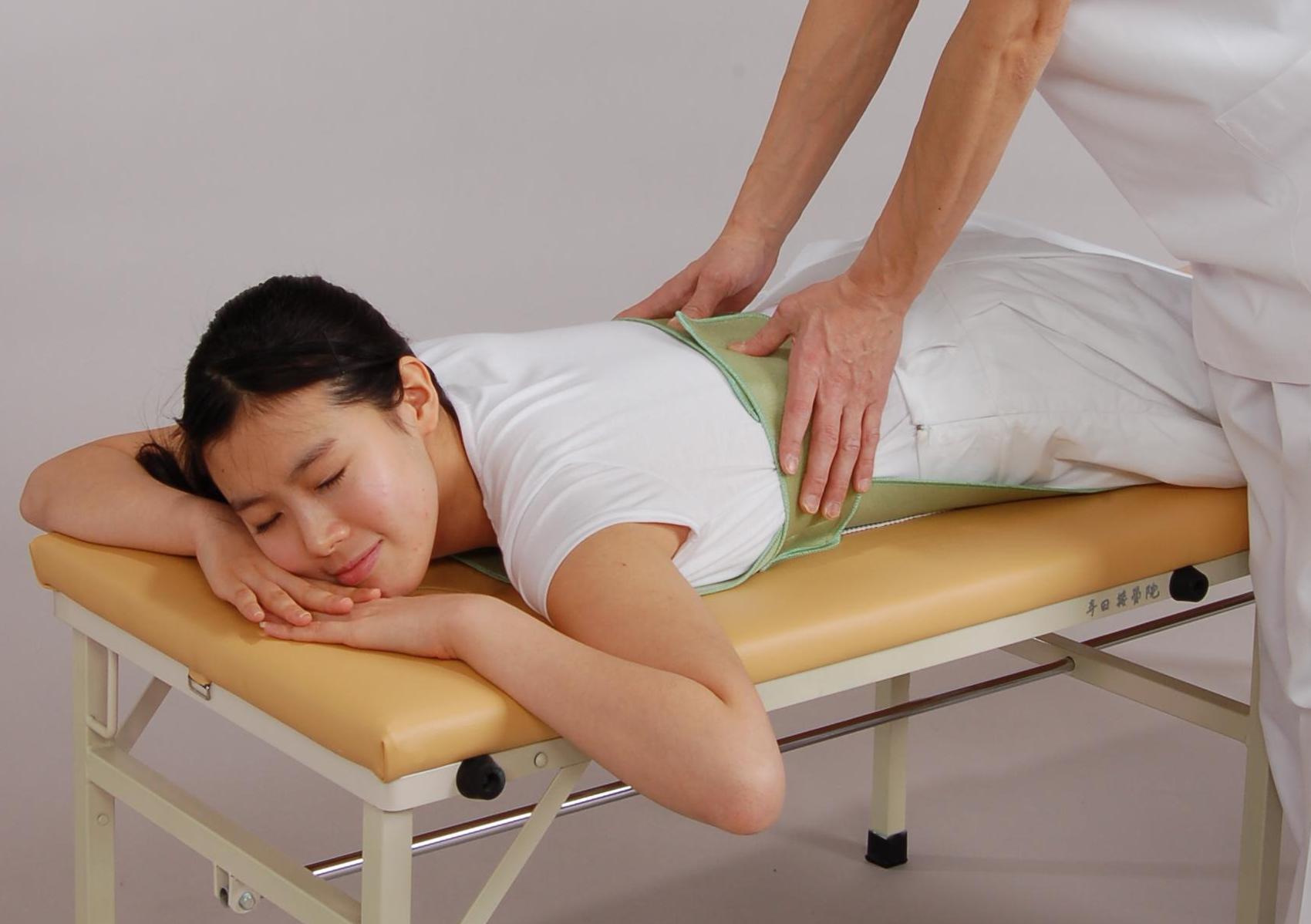 腰痛、腰部捻挫、背部痛、背部挫傷への加圧エフィシエ